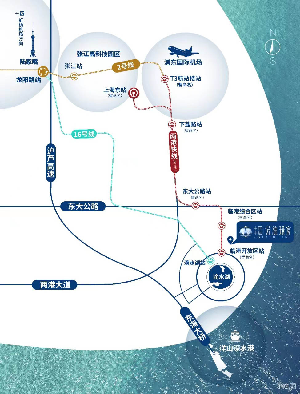贯穿105板块的两港快线已经在建设中,将实现临港新片区与虹桥国际机场、浦东国际机场的快速联系,进一步提升临港新片区、特别是105片区的发展能级,还有16号线,速联全市;东海大道、两港大道、临港大道等日常通勤畅达。