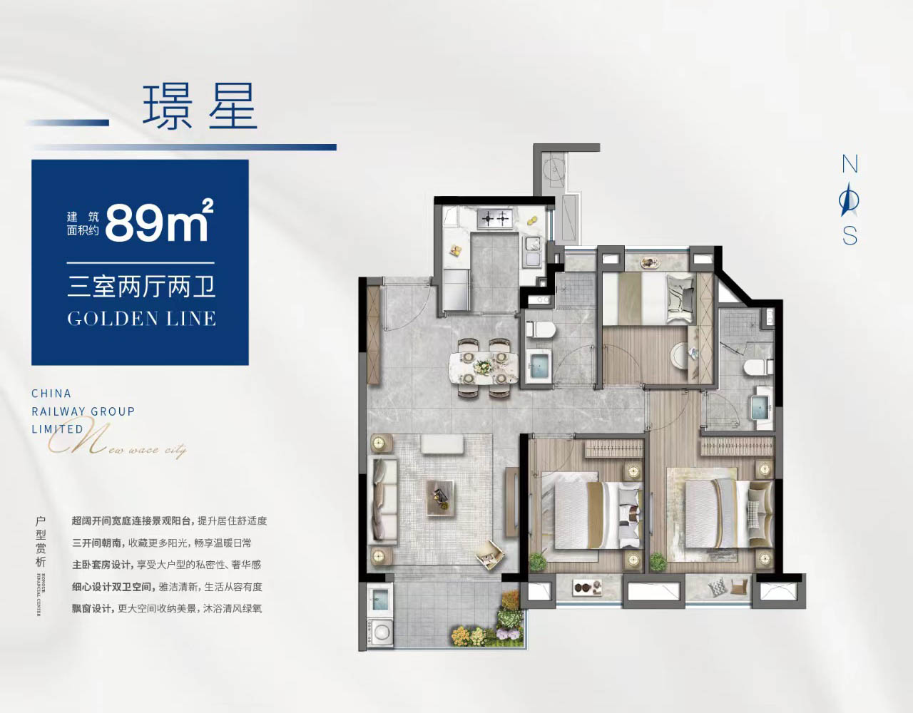 中国中铁•诺德璟宸深谙临港人居需求,以引以为傲的诺德幸福+生活体系为基础,匠心打造建面约89—129㎡幸福+菁智住区,全生命周期户型,空间布局合理,功能与尺度兼顾,满足不同客群、不同生活阶段的居住需求,赋予生活更多生命力。”