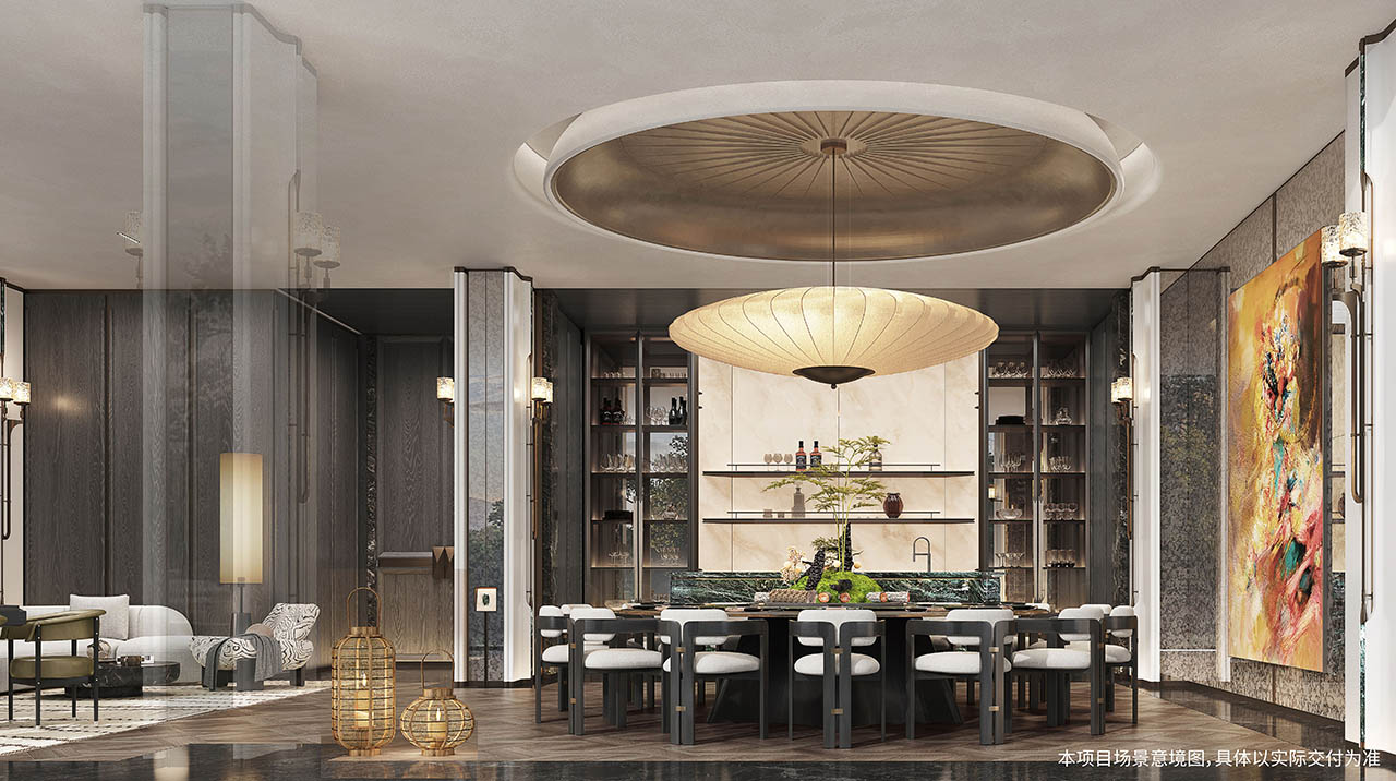 双会所体系,包含约2200平米的主会所与1000平米的泛会所,体量高达3200平,功能空间复合多元,涵盖多种生活场景,有专业级沉浸式录音棚、主厨明火私宴厅,也有spa、瑜伽室、棋牌室等空间。