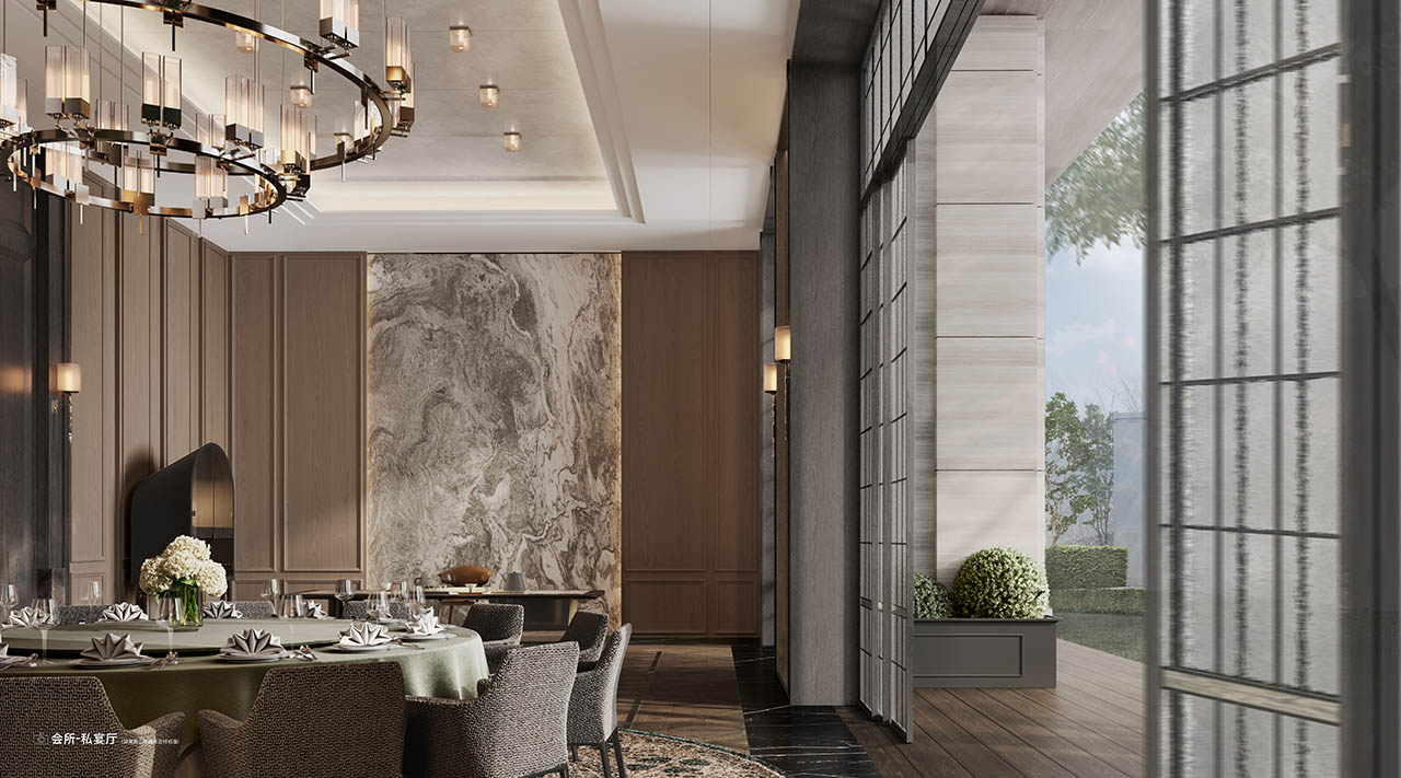 配置会所空间,合计面积约2700㎡,户均近10㎡的会所面积(295户),远远超过主流均值。会所设计提取了华尔道夫酒店的精神气质,极致的空间布局、精致的装饰细节以及光影的巧妙运用,营造出一种尊贵感、尺度感、气势感及氛围感。