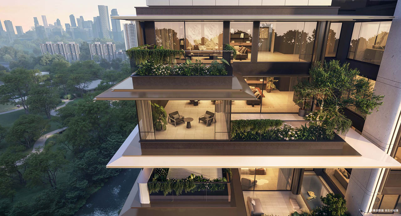 高层均配户外花园或光厅,拓展空间灵活,叠墅南北多个花园将建筑环绕,宛若一座浮岛花园。